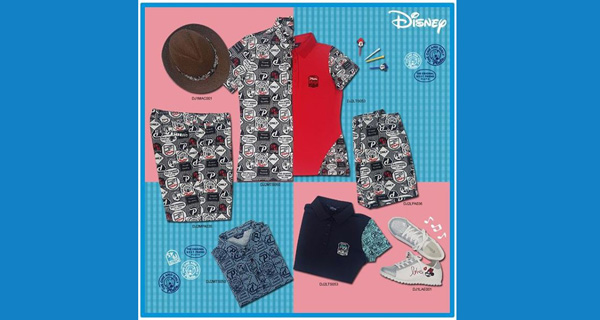 '세련된 로고 패턴의 디즈니 커플 골프웨어 스타일링'